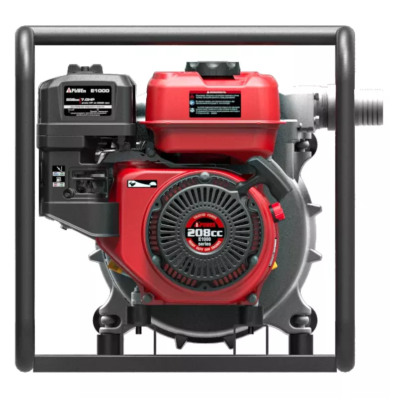 - Бензиновую мотопомпу A-iPower приводит в действие 4-тактный мотор, который выдает мощность 7 л.с. при 3600 об/мин.