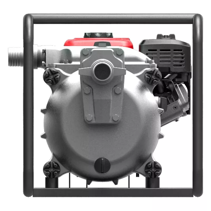 - Внутренние узлы защищены от случайных повреждений прочной рамой из стали толщиной 25 мм. По бокам она имеет скругленные края, что упрощает переноску мотопомпы в руках.