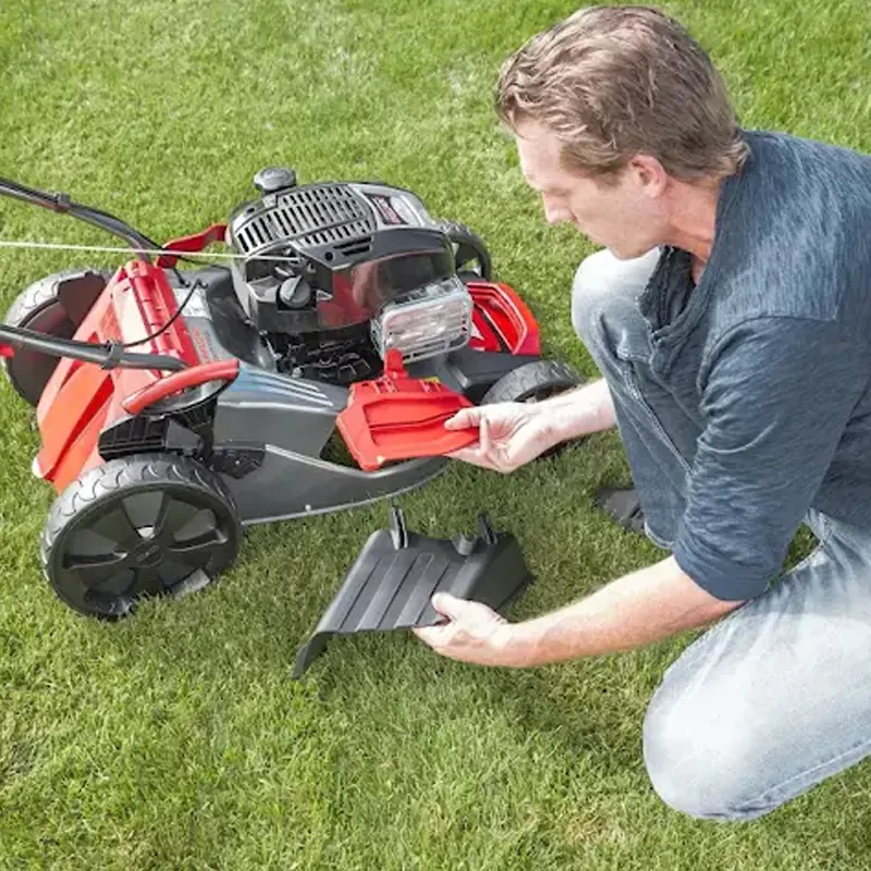 Помимо этого, модель обладает боковым выбросом травы. Это удобно, если вы не хотите использовать травосборник.