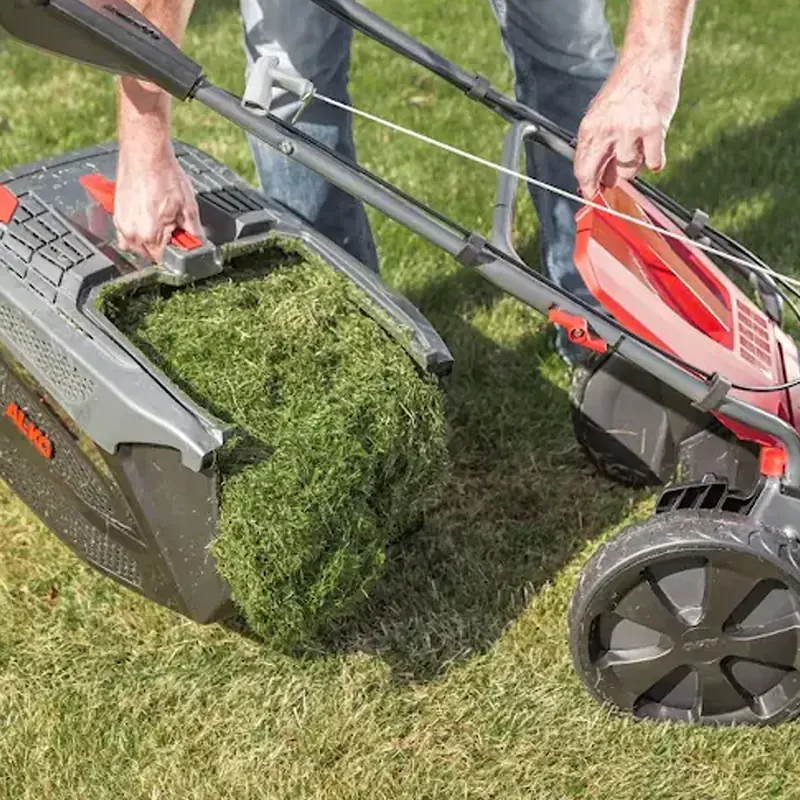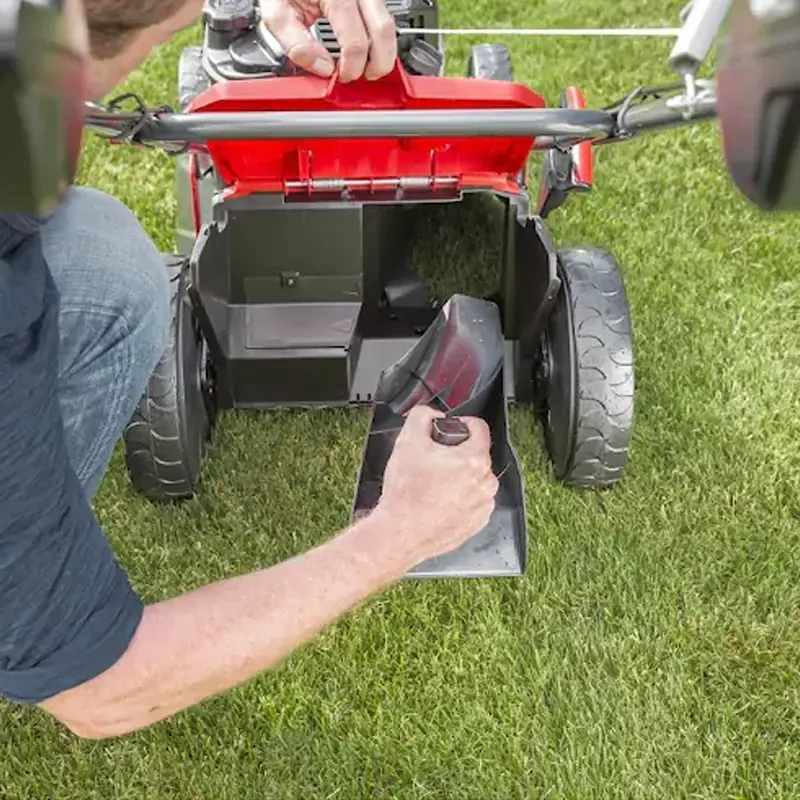 Бензиновая газонокосилка поддерживает несколько режимов работы, что позволяет работать на разных участках. При сборе растительности в травосборник он будет заполняться до самого верха. За счет этого вам не придется часто останавливать работу, чтобы опустошать его. При этом в верхней части травосборника расположен индикатор, который подскажет когда его пора опорожнять. Помимо этого, в косилке есть режим мульчирования. Он нужен для измельчения срезанной растительности и разбрасывания обрезков по газону. Они послужат естественным удобрением для травы. Если оба режима вам не подходят, то в модели также есть боковой выброс. Отличный вариант при работе на небольшом участке.