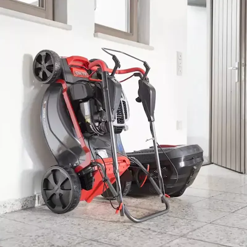 Рукоятка самоходной газонокосильной машины AL-KO Premium 470 VS-B складывается. Это позволит компактно хранить модель в стесненных условиях. Например, в тесной прихожей загородного дома или в маленьком гараже.