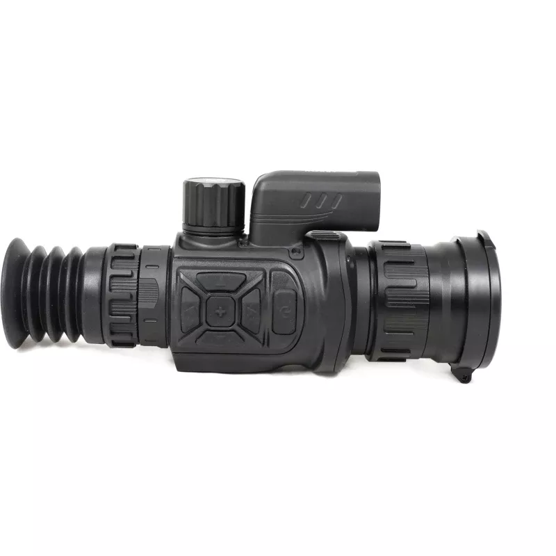 Прицел оснащен морозоустойчивым микродисплеем OLED с диагональю 0,39 дюйма и разрешением 1024x768 пикселей. Данный экран отличается минимальным энергопотреблением и надежно функционирует при температурах до -20°C. Для получения идеального изображения предусмотрены регулировки диоптрий, а также точная настройка яркости и контраста, что позволяет адаптировать картинку под индивидуальные предпочтения и особенности зрения.