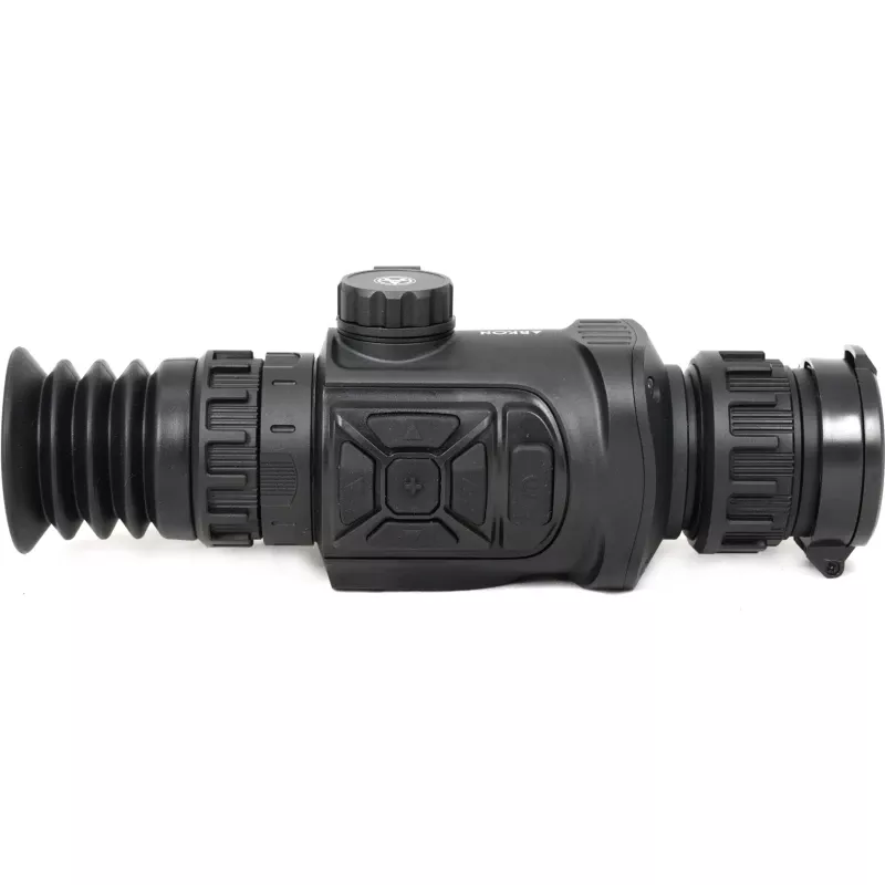Прицел оснащен германиевым объективом с фокусным расстоянием 35 мм и апертурой F1.0. Настройка резкости на необходимую дистанцию выполняется с помощью низкопрофильного кольца на объективе. Начальный уровень увеличения составляет 3,1х. Для увеличения изображения доступна функция Digital zoom, позволяющая плавно или дискретно изменять кратность от 1х до 8х, достигая максимального значения 24,8х. При минимальном увеличении угол поля зрения (FOV) составляет 7,5° х 5,7°, что соответствует видимой области пространства размером 13,1 на 10 метров на удалении 100 метров.