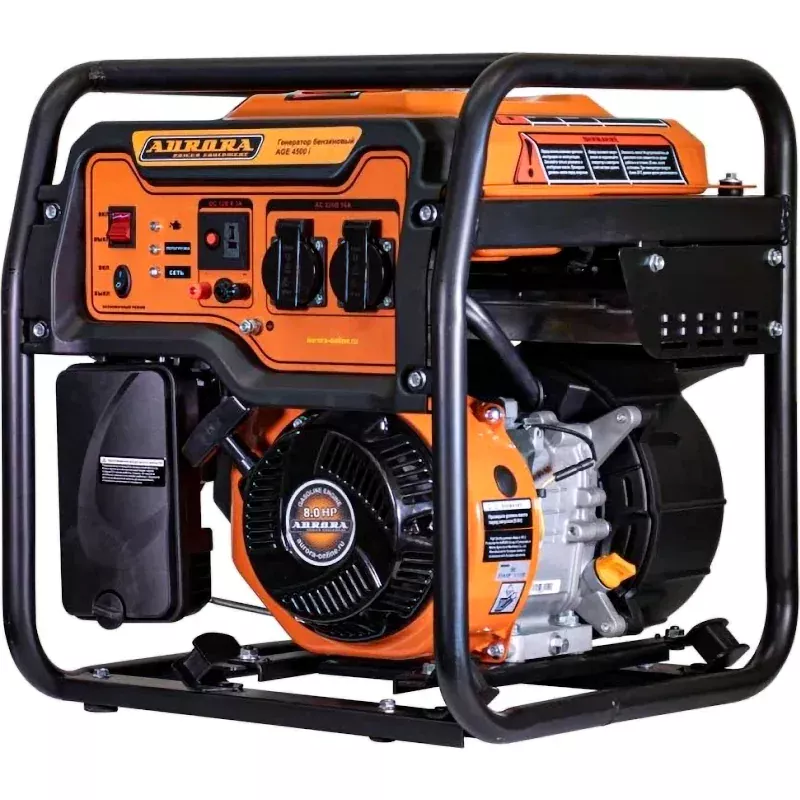 Генератор Aurora AGE 4500 I имеет защиту от перегрузки и короткого замыкания, при срабатывании которой розетки автоматически обесточиваются. Чтобы предотвратить поломку двигателя, электростанция не запускается при критически низком уровне моторного масла.