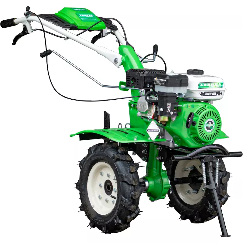 Бензиновый мотоблок Aurora COUNTRY 1005 предназначен для обработки почвы под посев и посадку овощных культур в подсобном хозяйстве. На вал отбора мощности и универсальную сцепку можно устанавливать активное и пассивное навесное оборудование. В комплект поставки входят комплекты острых саблевидных фрез, которые обеспечивают вспашку земли на глубину до 30 см. Ширину обработки можно изменять от 800 до 1050 мм. Мотоблок оснащен четырехтактным двигателем с воздушным охлаждением мощностью 9 л.с.