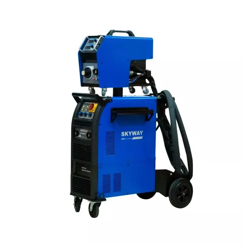 SKYWAY 500 – 3-х фазный инвертор для полуавтоматической сварки в среде инертного/активного защитного газа MIG-MAG и ручной дуговой сварки штучным электродом MMA, - как с источника так и с выносного подающего механизма. Тележка с подставкой под баллон, высокая компоновка аппарата, встроенная станция охлаждения, подающий механизм "декомпакт" в базовом комплекте поставки - все эти моменты существенно облегчают работу сварщика и значительно увеличивают время непрерывной работы аппарата. SKYWAY – это передовая технология инверторного блока IGBT, отличные сварочные характеристики и превосходная эргономика управления.