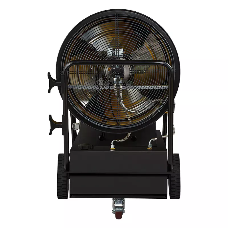 Несмотря на вес в 90 кг, пушку удобно перемещать по помещению. Для этого предусмотрена транспортировочная рукоятка, а также три колеса. Опорный ролик спереди обеспечивает устойчивое положение техники. Два задних колеса большего диаметра выполнены из резины, которая гасит часть вибраций, снижая уровень шума.
