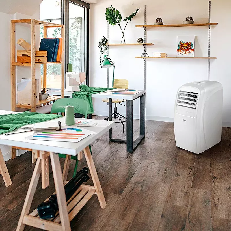Мобильный кондиционер с потребляемой мощностью 2,18 кВт обеспечивает высокую производительность охлаждения 18000 BTU или 5,7 кВт, поэтому создает комфортный микроклимат даже в большом помещении. Скорость воздушного потока можно регулировать до 450 м3/ч. Чтобы прохладный воздух распределялся равномерно, предусмотрена функция автоматического поворачивания вертикальных жалюзи. При кондиционировании лишняя влага выводится наружу вместе с теплым воздухом.