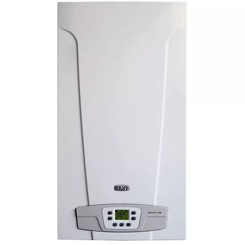 Газовый котел Baxi ECO-4S 18 F востребован в частных домах для обогрева и горячего водоснабжения. Небольшой аппарат компактно размещается на стене. Полезная тепловая мощность составляет 18 кВт в контуре отопления и 24 кВт в контуре ГВС. Системы защиты от перегрева, замерзания, пониженного давления, отсутствия воды и пламени обеспечивают безопасность эксплуатации. Котел может работать как от магистрального, так и от сжиженного газа. Для работы автоматики прибор подключается к бытовой электросети.