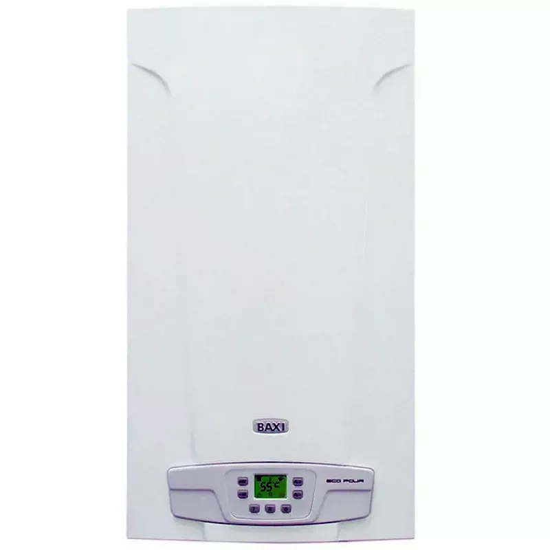Газовый котел Baxi ECO FOUR 24 F компактно размещается на стене благодаря небольшим габаритам. Аппарат позволяет нагревать воду для бытовых нужд от 30 до 85_С и отапливать помещение с возможностью регулировки температуры в диапазоне 30–60_С. Котел снабжен системами защиты от замерзания и перегрева, датчиками тяги и наличия пламени, предохранительным клапаном давления. В качестве топлива используется природный или сжиженный газ. Высокая тепловая мощность 24 кВт обеспечивает быстрый нагрев воды в трубах.