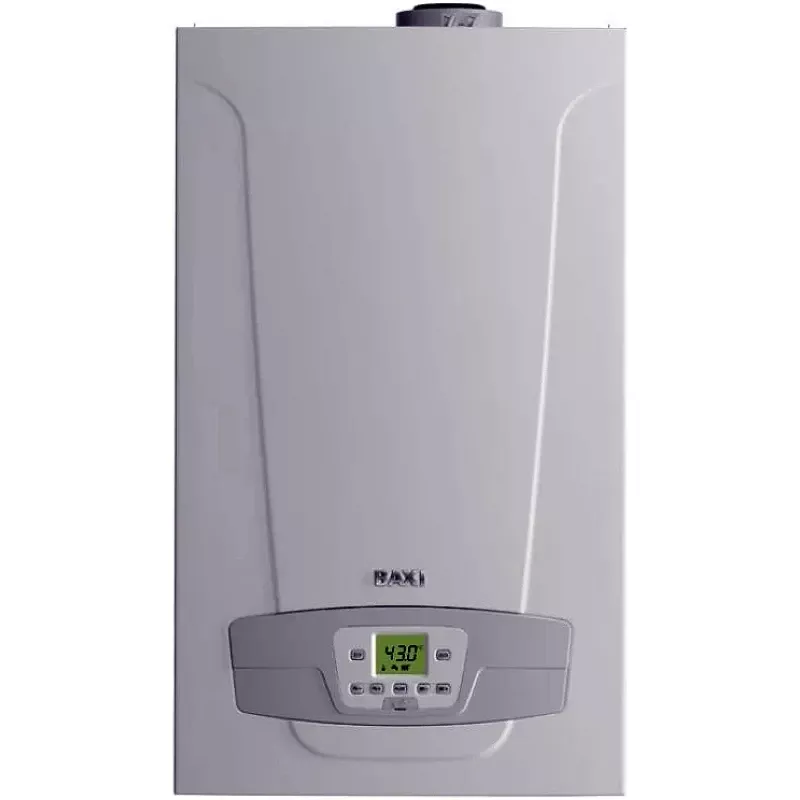 Устройство оснащено информативным дисплеем для удобства управления. На экране отображается заданная температура нагрева. Наглядные пиктограммы информируют о выбранных режимах, неисправностях и состоянии газового котла Baxi. Кнопка перезапуска помогает восстановить работу оборудования в случае образования воздушных пробок в трубе подачи газа. Подогрев воды для хозяйственных нужд возможен при подсоединении внешнего бойлера. Температуру в контуре горячего водоснабжения можно ступенчато регулировать с помощью кнопок на передней панели.