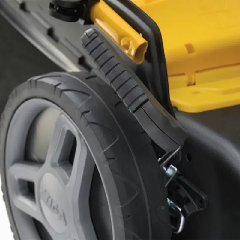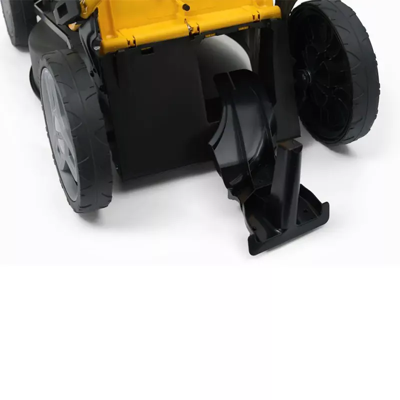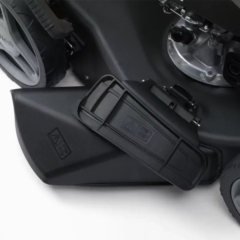 Бензиновая газонокосилка поддерживает четыре режима стрижки: со сбором в контейнер, выбросом назад и в сторону, а также мульчирование. Первый вариант идеально подойдет для получения чистого и аккуратного газона, второй и третий — удобны для скашивания высокой и влажной травы. В четвертом случае скошенная растительность измельчается и возвращается обратно для удобрения почвы. Режимы бокового или заднего выброса позволяют равномерно покрыть весь газон скошенной травой, из которой затем можно заготовить сено. На ручке управления находится специальный крючок для крепления пускового троса. Если двигатель заглохнет в процессе работы, то оператору не придется наклоняться к стартеру, чтобы завести косилку.