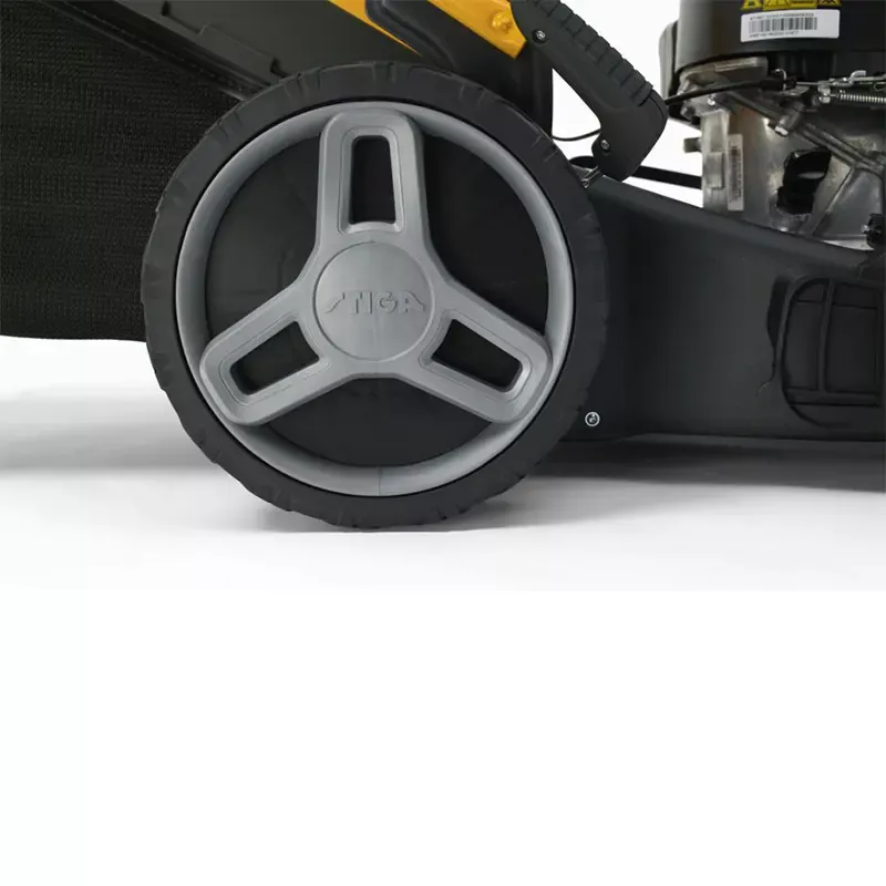 Газонокосилка Stiga Combi 48 Q оснащена легким и вместительным травосборником, изготовленным из пластика и синтетической ткани и имеющим индикатор заполнения. Сверху контейнера находится удобная ручка для переноски, а специальное крепление не допускает высыпания содержимого при отсоединении. Рычаг для регулировки высоты кошения, расположенный около заднего правого колеса, позволяет выбрать нужное положение одним движением. Антикоррозийное покрытие деки продлевает время эксплуатации и повышает износоустойчивость косилки. Загрязненный корпус достаточно промыть чистой водой без вреда для устройства. Рукоятку можно устанавливать в одно из двух положений, а ее верхнюю часть — складывать для экономии места при хранении. Колеса с прорезиненными протекторами обеспечивают хорошую проходимость и маневренность косилки.