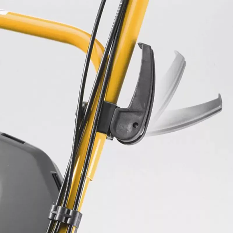 - Эргономичная складная рукоятка с эксцентриковыми зажимами и возможностью регулировки - Компактное хранение газонокосилки благодаря складной рукоятке, регулируется эксцентриковыми зажимами. Удобная регулируемая по высоте рукоятка управления позволяет устанавливать высоту на максимально комфортном для оператора уровне, у неё есть мягкая резиновая обтяжка, понижающая передаваемую на руки вибрацию. Рукоятка также складывается, что очень удобно при транспортировке и хранении.