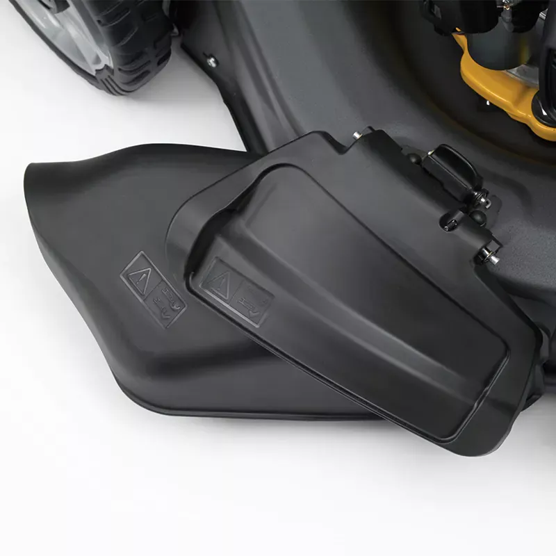Косилка имеет центральную систему регулировки высоты среза травы в диапазоне от 25 до 77 мм и поддерживает четыре режима скашивания. Срезанную траву можно собирать во вместительный травосборник, выбрасывать назад или в сторону, а также измельчать с помощью мульчирующей заглушки.