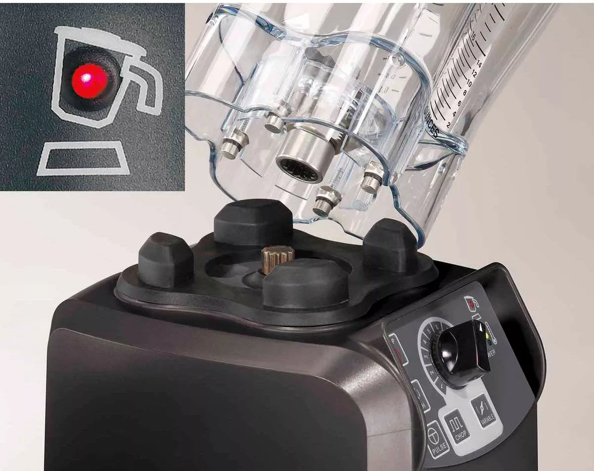Оснащен датчиком установки стакана, который предотвращает повреждение механизма сцепления. Сверхнадежный механизм сцепления двигатель стакан - металметал. Надежность и долговечность. Среднее время приготовления коктейля - 12 секунд.