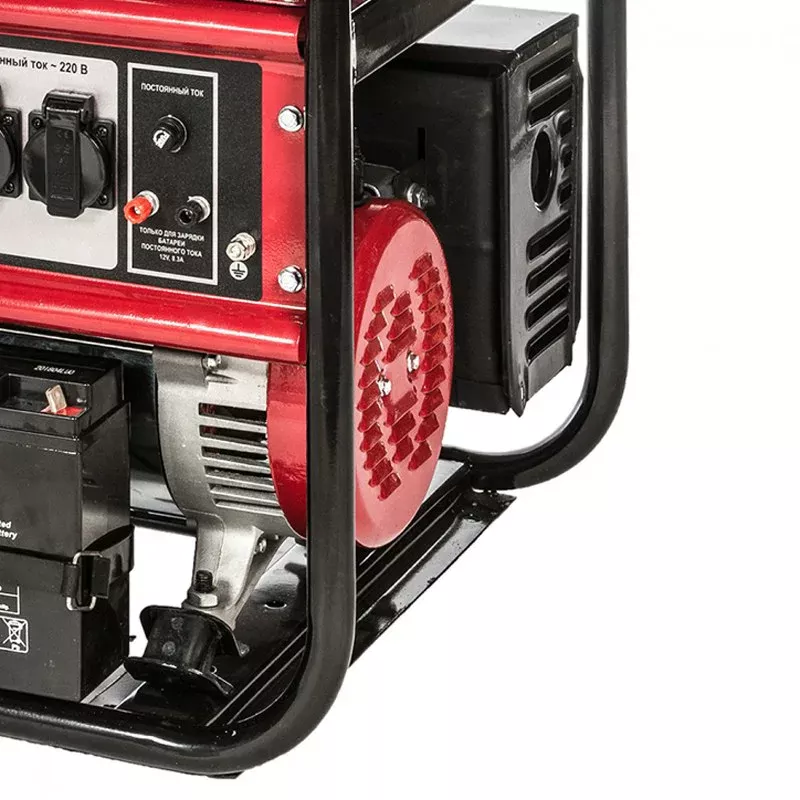 Генератор бензиновый BRAIT BR-6500CU(E) имеет специальную раму — за нее можно взяться руками и быстро, а главное безопасно перенести изделие в требуемое место. Рама продумана до мелочей и очень прочная, ни при каких обстоятельствах не переломается. Конструкцией модели предусмотрены добавочные ребра жесткости. По размерам это небольшой и нетяжелый агрегат. Когда возникнет необходимость в том, чтобы перенести изделие в нужное место, то это без труда удастся сделать.