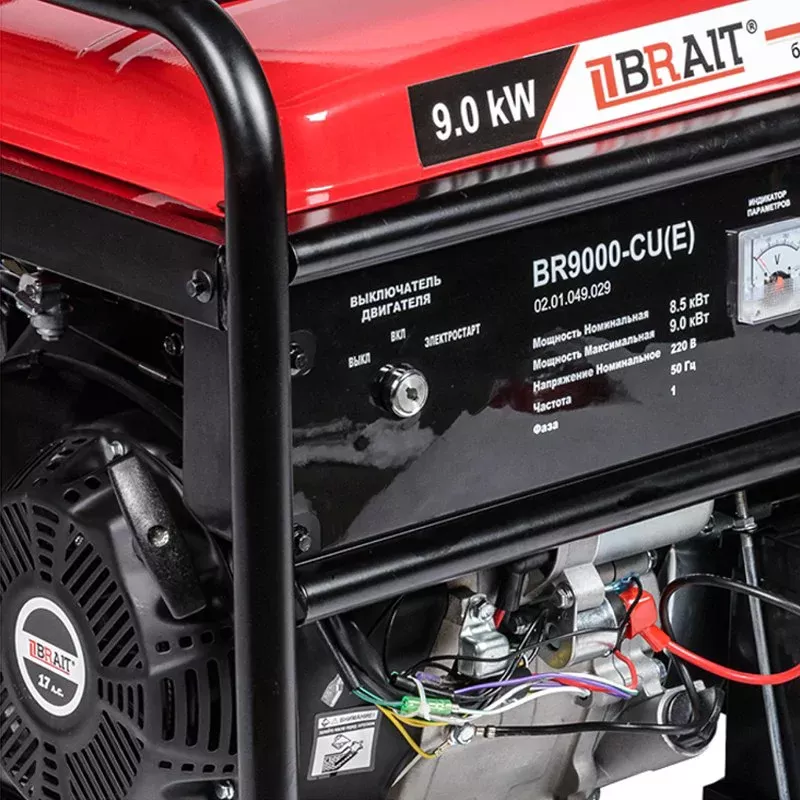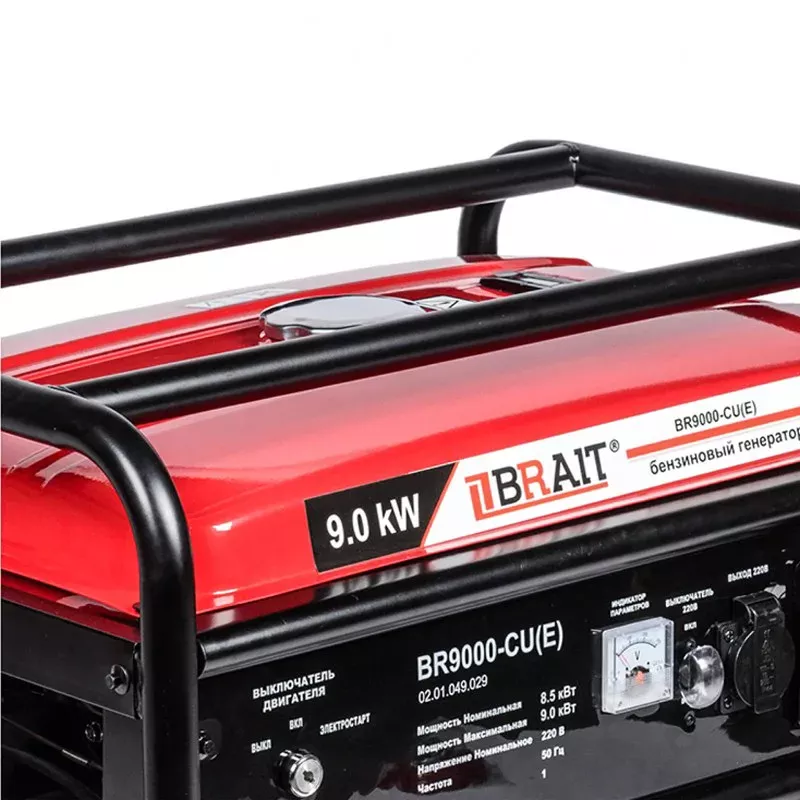 Генератор бензиновый BRAIT BR9000-CU(Е) – подходящий вариант для тех, кто ищет однофазную модель для аварийного снабжения электричеством в ситуациях отсутствия электросети. Его часто приобретают для строительных и ремонтных площадок, загородных домов, дач, коттеджей, личного хозяйства, социальных объектов и т.д. К этому бензиновому генератору можно подключать мощные бытовые электроприборы и различное хозяйственное оборудование. Его номинальная мощность составляет 8500 ватт, при этом агрегат производит качественное электричество 220 В.