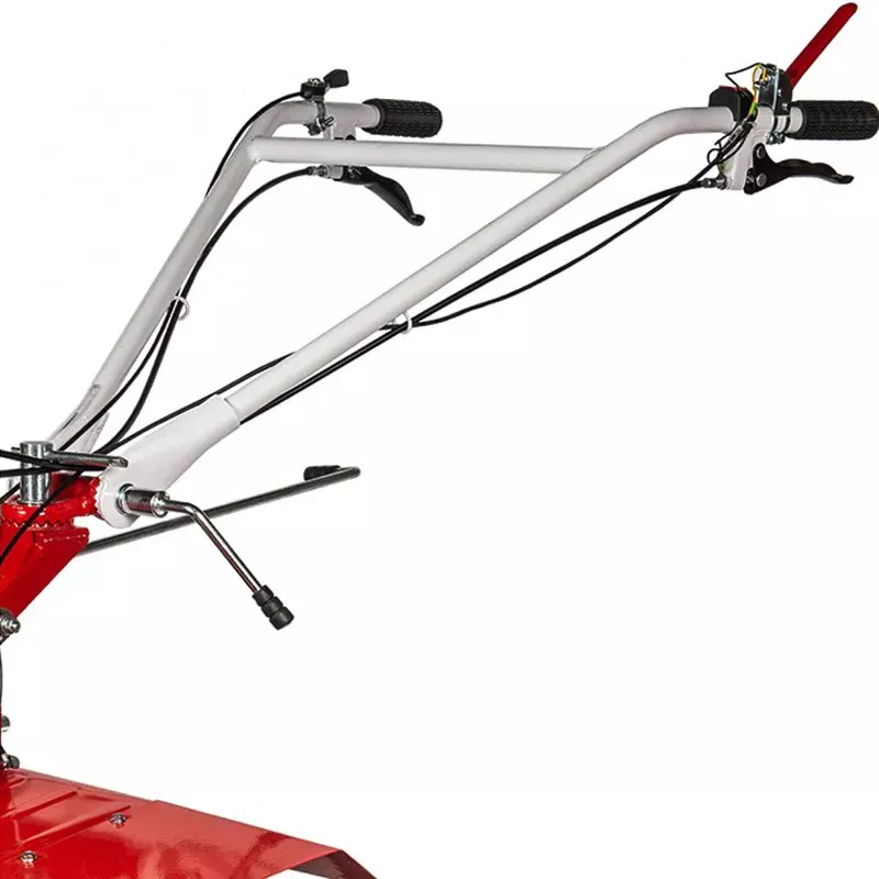 - Эргономичная рукоять с удобным хватом и прорезиненными накладками. У данной модели мотоблока, предусмотрена многофункциональная поворотная ручка управления для оператора. Возможность менять положения как по горизонтали, так и по вертикали значительно упрощает работу в труднодоступных местах.