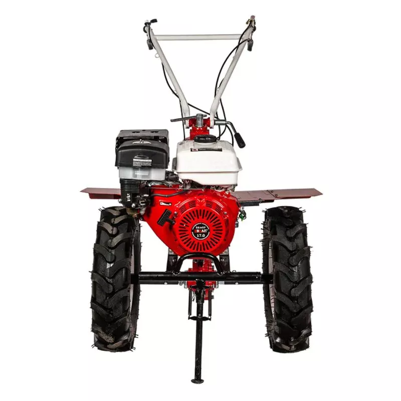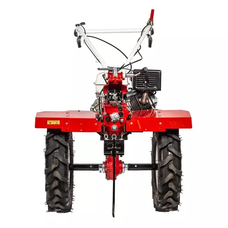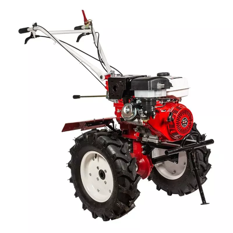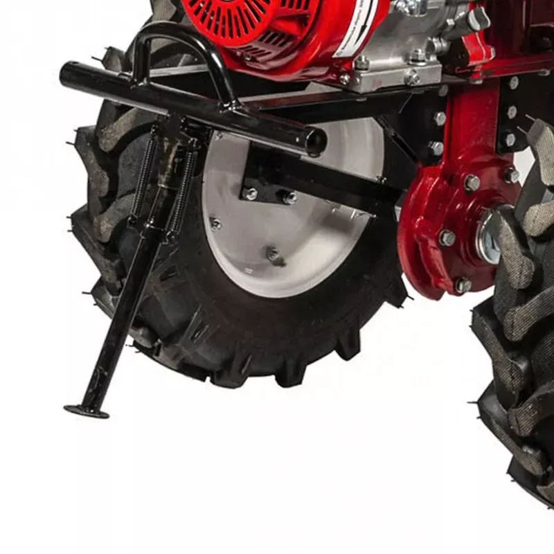 - Большие пневматические колеса обеспечивают отличную проходимость мотоблока по местности