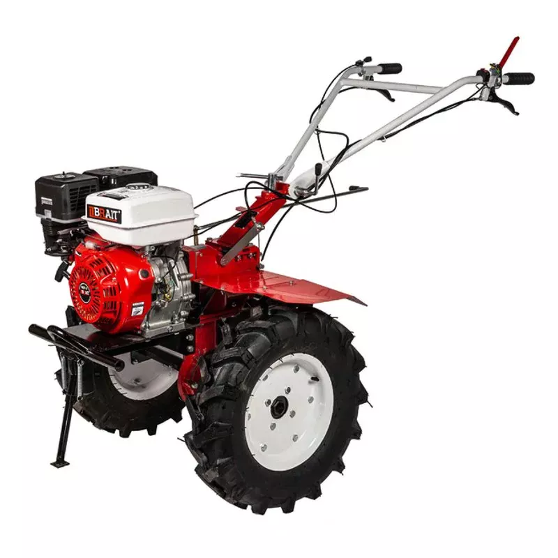 Бензиновый мотоблок BRAIT-135GE отличается многофункциональностью, мощностью и прочностью конструкции. Используется для вспашки земли. Усиленная рама обеспечивает удобство погрузки/разгрузки мотоблока. Агрегат имеет цельнолитой чугунный редуктор, который отличается долговечностью. В комплект входят большие пневматические колеса. Возможна установка навесного оборудования (опция): тележка, плуг, окучник, картофелевыкапыватель. У мотоблоков BRAIT предусмотрена многофункциональная поворотная ручка управления для оператора. Возможность менять положения как по горизонтали, так и по вертикали значительно упрощает работу в труднодоступных местах. Сама рама выполнена из специально усланного сплава чугуна дополнительной толщины, в отличии от упрощенных алюминиевых конкурентов. Большие пневматические колеса обеспечивают отличную проходимость мотоблока по местности.
