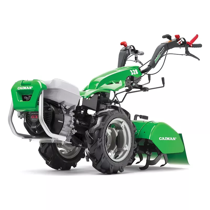 Мотоблок Caiman Atletico 328 P – многофункциональный двухколесный трактор с профессиональным бензиновым двигателем Honda мощностью 5,5 л.с., реверсивной рукояткой управления, гидравлическим сцеплением PowerSafe® и шириной обработки почвы до 80 см (в зависимости от выбора навесного приспособления). Эта универсальная машина позволяет круглый год выполнять множество задач наряду с классической культивацией: обработка почвы, уход за садом и газонами, междурядная стрижка в виноградниках и фруктовых садах, работа на неухоженных территориях. Реверсивная рукоятка управления, в сочетании с правильным соотношением передних скоростей и скоростью вращения независимого ВОМ, позволяют использовать мотоблок и с задним, и с передним навесным оборудованием. Благодаря простоте ухода и эксплуатации двухколесный трактор может быть использован любыми пользователями: от частных владельцев до профессионалов (фермерских, тепличных, садовых, коммунальных хозяйств).