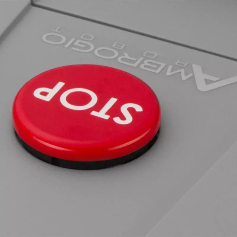 Большая кнопка STOP на корпусе машины. Вы в любой момент можете экстренно остановить робота и прекратить вращение ножа.