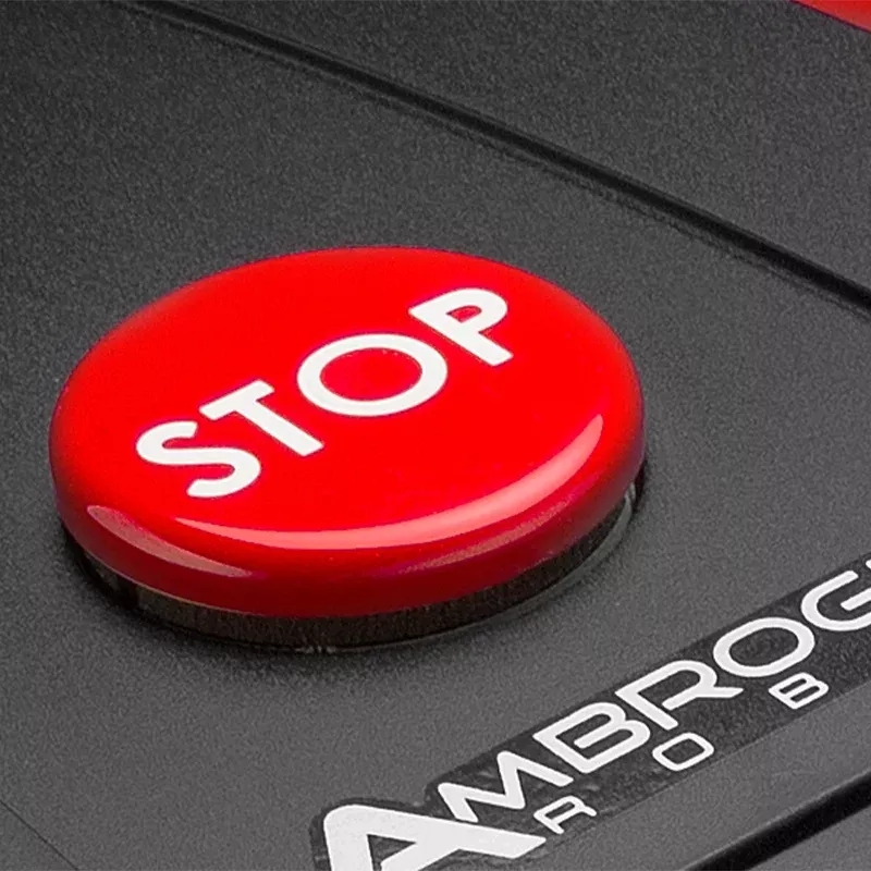 Большая кнопка STOP на корпусе машины. Вы в любой момент можете экстренно остановить робота и прекратить вращение ножа.