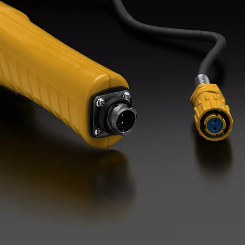 Соединительный кабель длиной 1,3 м, связывающий ножницы с аккумуляторным блоком, входит в комплект инструмента. Кабель имеет тройную изоляцию и оснащен алюминиевыми фитингами быстрого соединения, которые защищены от пыли и влаги