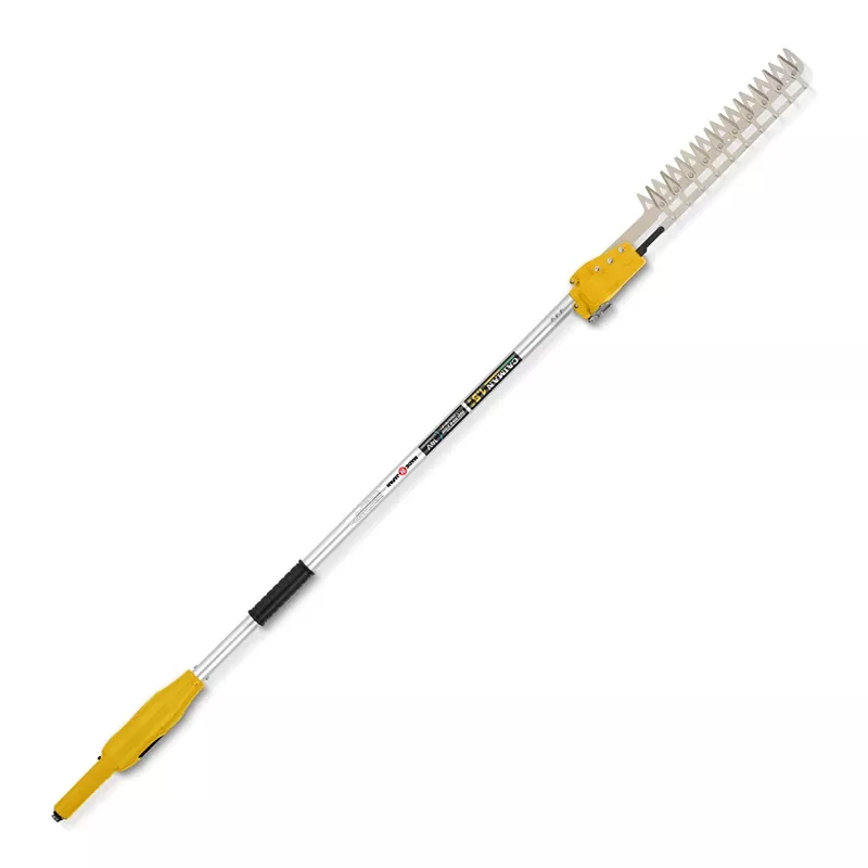 Аккумуляторные ножницы CAIMAN CN-903-3 на длинной штанге позволяют подрезать декоративные кустарники и деревья, придавать форму живым изгородям. Легкая (всего 1,85 кг) конструкция длиной 1,5 метра позволяет находиться на земле и обрезать ветки, расположенные на высоте, без использования лестниц, стремянок и других приспособлений. Угол режущего полотна можно изменить на 30 градусов вправо или влево относительно вертикальной оси.