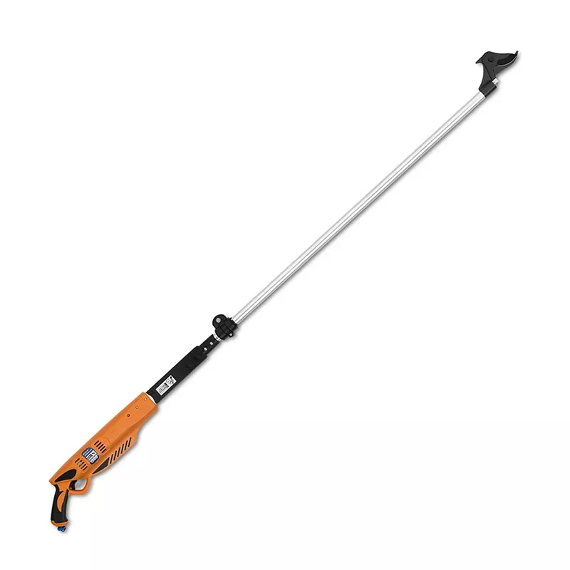 Аккумуляторный секатор на длинной штанге CAIMAN CN-946 позволяет вести обрезку сучьев и ветвей диаметром до 27 мм, находящихся на высоте от земли или в глубине кроны дерева, куда сложно дотянуться при помощи обычного инструмента. Штанга длиной 1,5 метра позволяет решать такую задачу наиболее удобным и безопасным способом – находясь на значительном расстоянии от ветки: например, стоя на земле, не прибегая к помощи стремянки, лестницы и не влезая на дерево. Наличие электромотора и малый вес инструмента (всего 2,0 кг) ускоряет и облегчает работу, так как не требует каких-либо значительных физических усилий для обрезки веток.