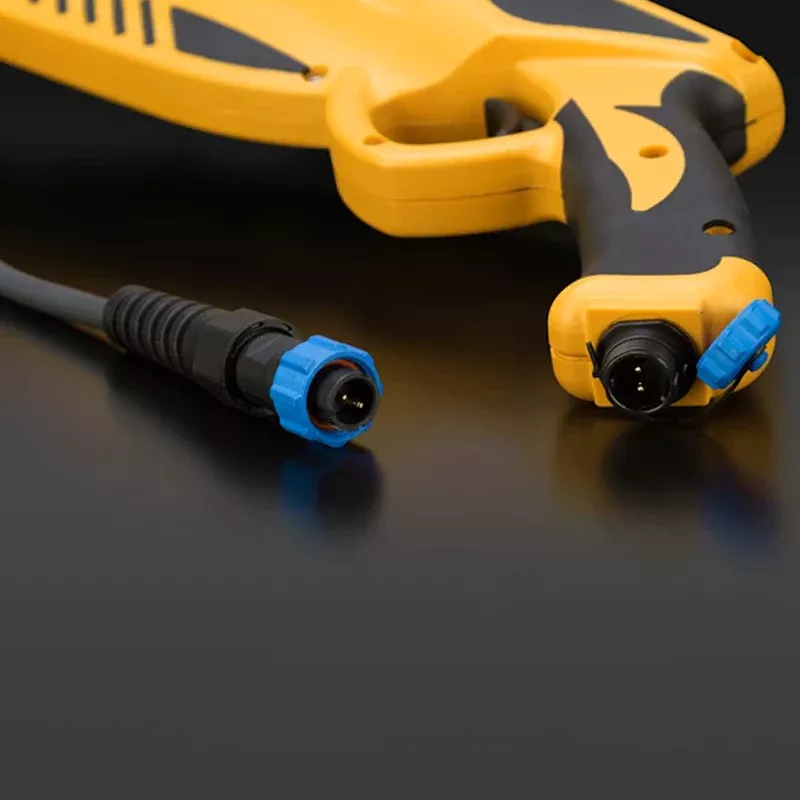 - Быстросъемное проводное соединение инструмента с аккумуляторной батареей