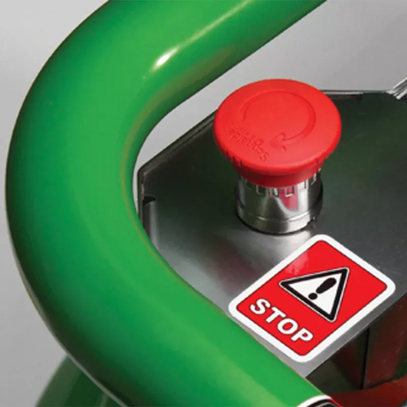 Радиоуправление с расстоянием передачи сигнала до 150 м. Благодаря дистанционному управлению оператор все время находится на расстоянии от машины, которое гарантирует ему комфорт и безопасность: вы не подвергаетесь риску упасть на склоне, не дышите выхлопными газами и пылью, не испытываете шумовую нагрузку. Пульт управления представляет собой бесконтактный оптический джойстик, обеспечивающий полный и точный контроль, взаимодействует с датчиками машины для исключения опасного маневрирования. Класс защиты IP65 (исключается попадание пыли и капель дождя). Автоматический поиск частоты (AFA)