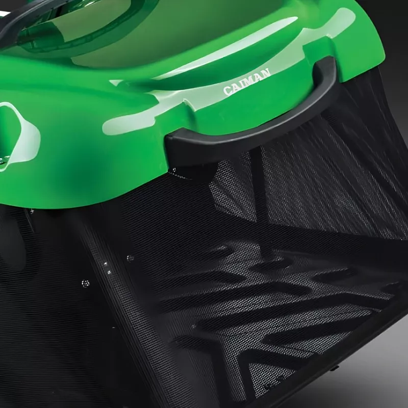 Большой травосборник 380 литров Травосборник емкостью 380 литров изготовлен из износостойкого полимера, который хорошо пропускает воздух, что увеличивает эффективность сбора травы. Он оснащен сбалансированным рычагом подъема, облегчающим выгрузку скошенной травы, снятие и установку травосборника.