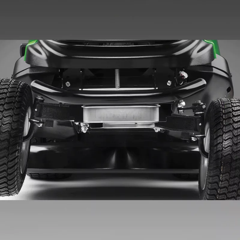 Колеса и режущая дека с плавающей подвеской во время работы повторяют все неровности рельефа, обеспечивая аккуратный результат даже на сложном ландшафте.