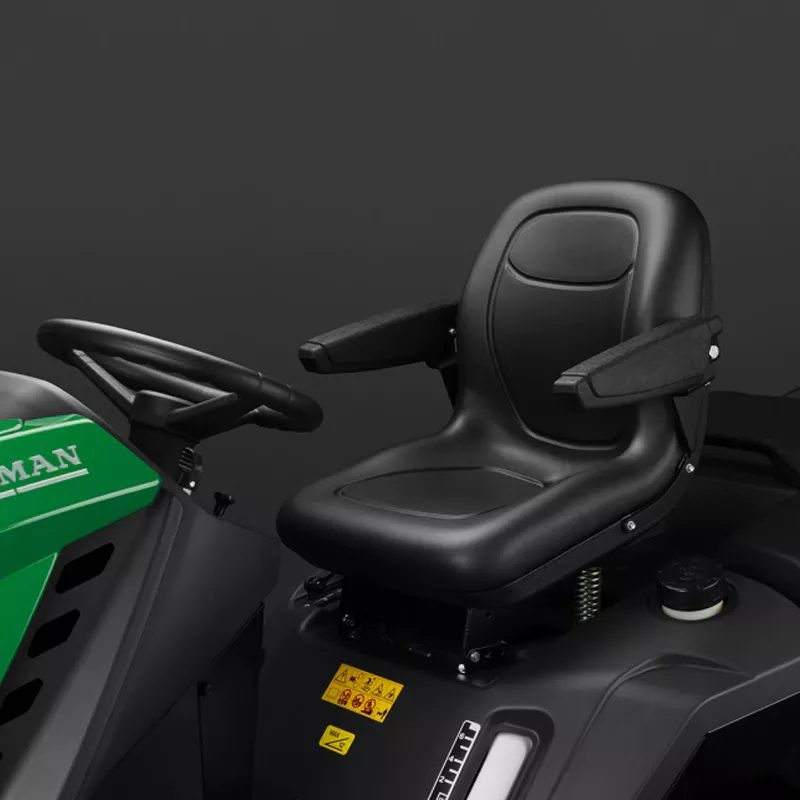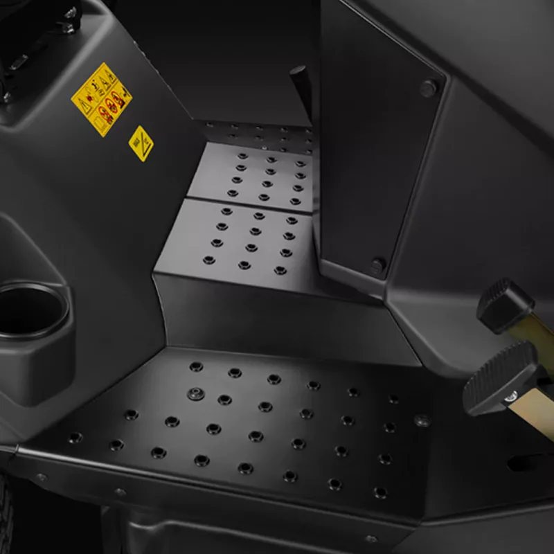 Обеспечивает высокую маневренность и минимальный радиус поворота – всего 76 см. Эта функция дает возможность машине проходить вплотную к различным объектам и огибать их, тщательно окашивая зоны в непосредственной близости от деревьев, клумб и т.д., снижая объем ручной стрижки в труднодоступных местах.