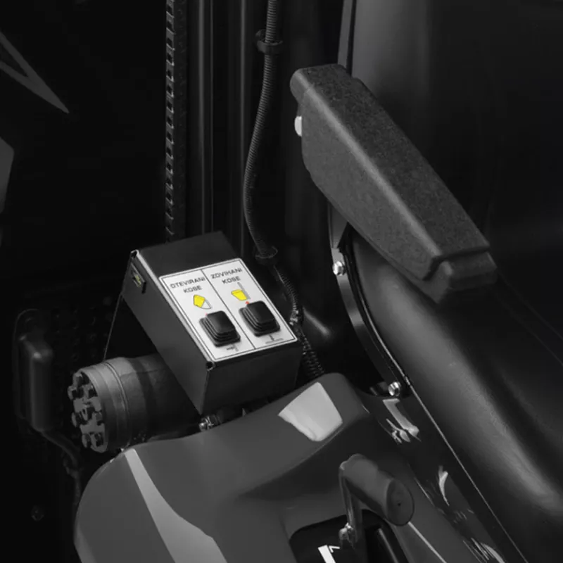 Гидролифт позволяет поднять травосборник на высоту 187 см, чтобы выгрузить собранную траву в кузов грузовика или прицепа. Управление процессом производится с рабочего места оператора при помощи всего двух кнопок. Подъем и выгрузка выполняются независимо друг от друга в любом положении бункера. Машина оснащена передним противовесом для того, чтобы исключить опасность опрокидывания при переполненном травосборнике.