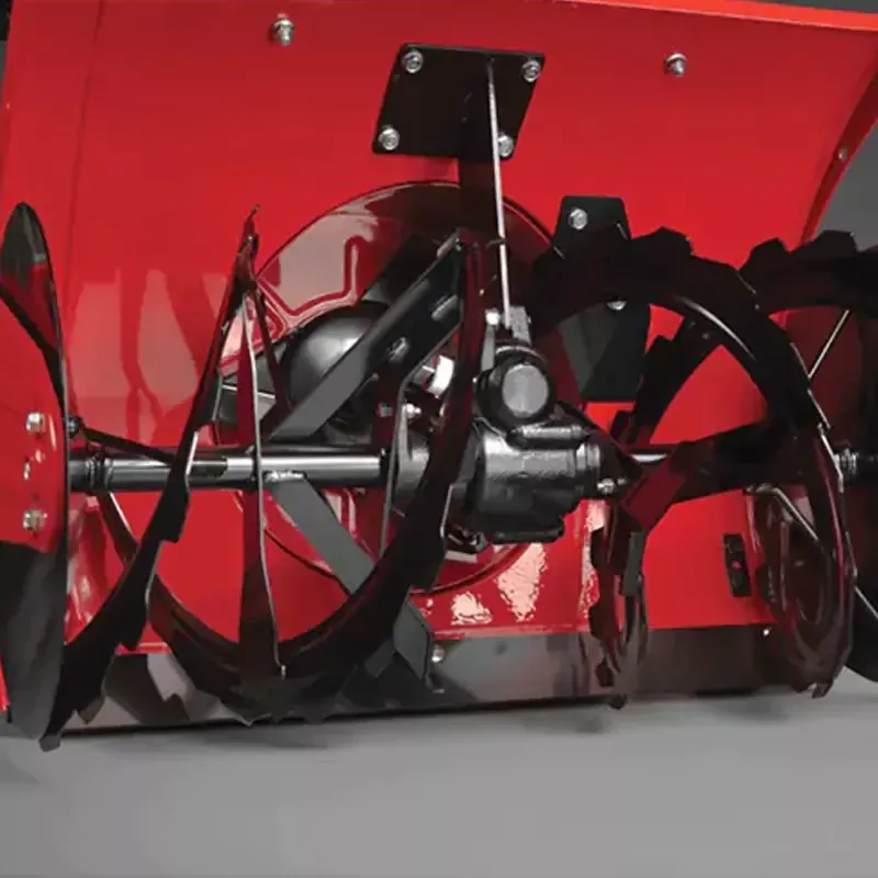Выброс снега настраивается вручную. Для этого на панели управления есть отдельный рычаг. Настройка определит дальность отбрасывания снежных масс и направление.