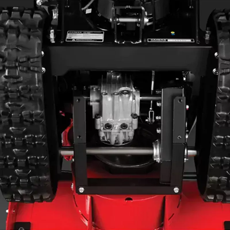 Гусеничный ход делает снегоуборщик практически вездеходным. Хорошее сцепление обеспечивает плавный ход как по рыхлому снегу, так и обледеневшей дорожке. Гусеницы позволяют преодолевать неровности и небольшие ямки на участке.