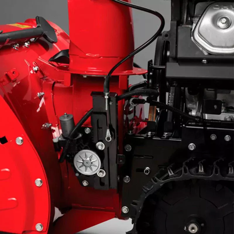 Электрическое управление дефлектором. Электромотор (сервопривод) позволяет регулировать угол и положение дефлектора выброса снега при помощи джойстика, расположенного на панели оператора.
