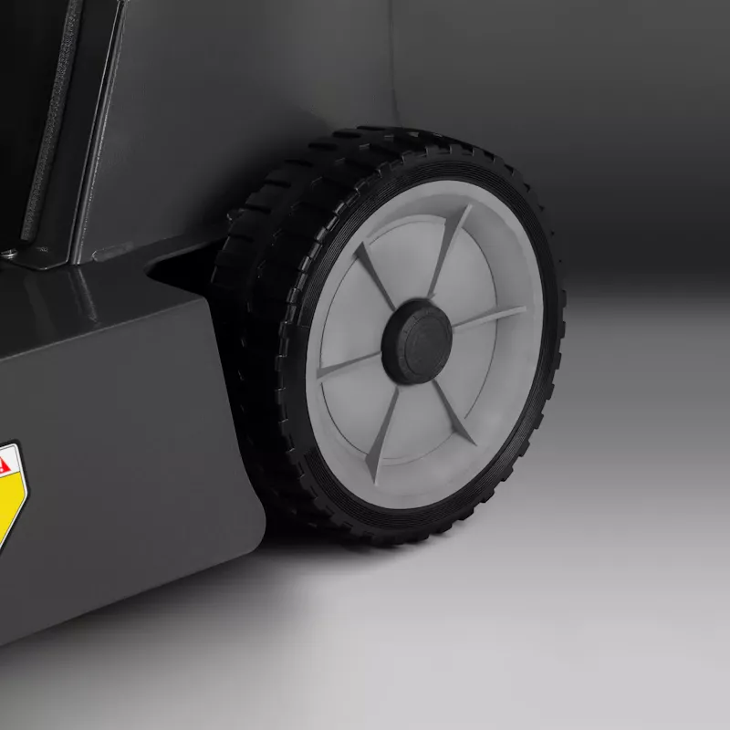 Безопасность оператора Передняя рукоятка-бампер выполняет несколько функций: защищает машину при столкновении с препятствиями, прижимает высокую траву в направлении от оператора, а также позволяет приподнять газонокосилку, не берясь за край корпуса режущей деки. Передняя металлическая «шторка» складывается внутрь деки для облегчения стрижки высокой травы и препятствует выбросу обрезков наружу.