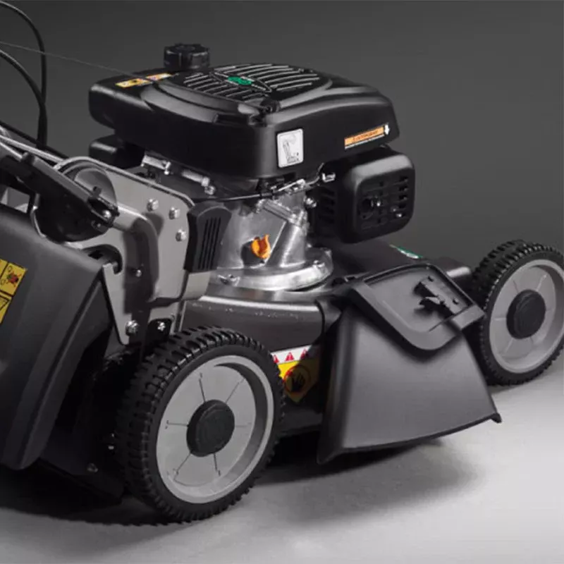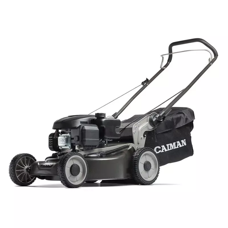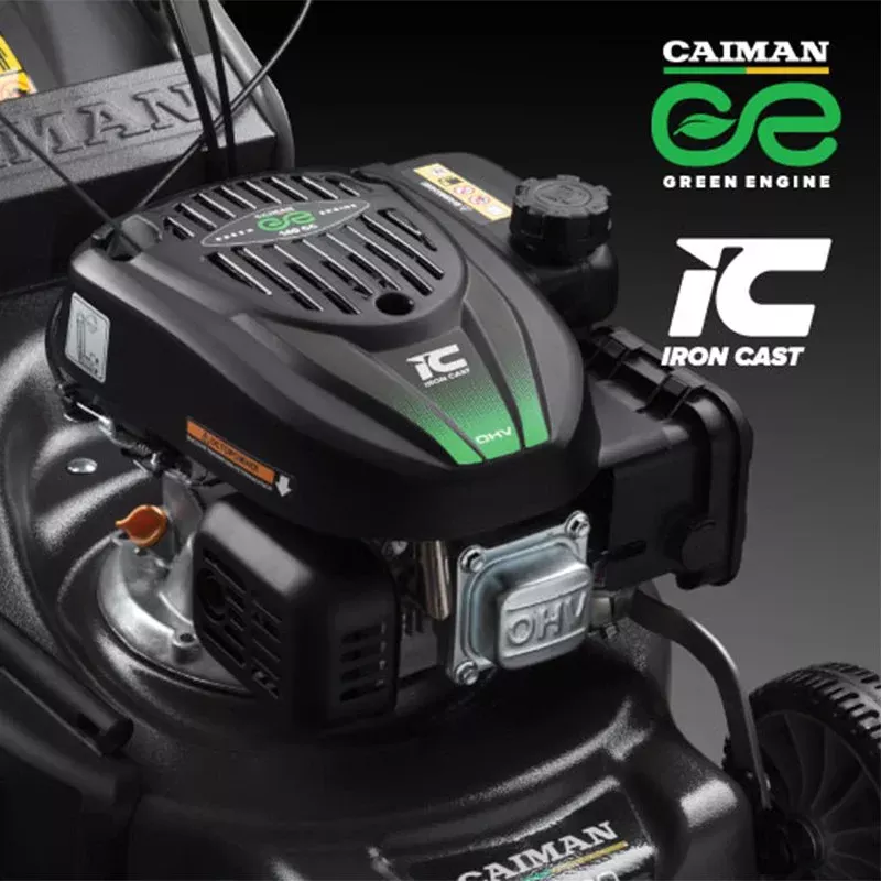 В бензиновой газонокосилке установлен экологичный 4-тактный мотор Caiman Green Engine Iron Cast. От обычных двигателей его отличает минимальное количество вибраций и шума, а также прочная конструкция. Например, чугунная гильза цилиндра рассчитана на длительный срок службы. Карбюратор гарантирует эффективность сгорания топлива даже при загрязненном фильтре.