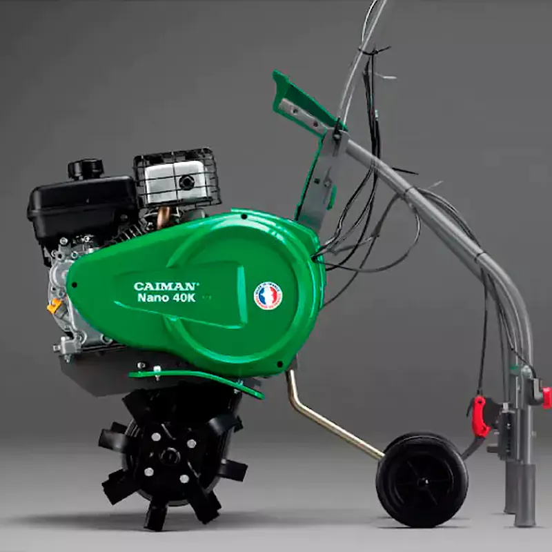 Культиватор Caiman Nano 40 - компактная модель с хорошей производительностью для работ в ограниченном пространстве. Оптимальная площадь клумб, теплиц и грядок для культиватора Nano составляет 500 кв.м.