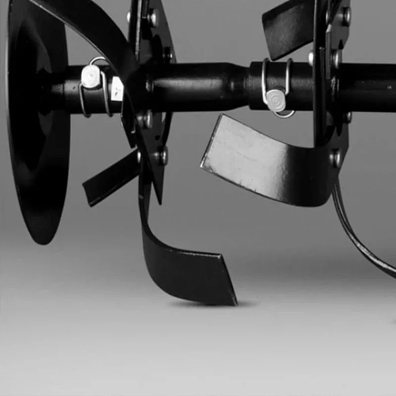Эффективность такой формы лезвий проверена временем. Особая геометрия позволяет ножам входить в почву, не создавая при этом сильной вибрации. Они изготовлены из высококачественной стали, обладающей повышенной прочностью благодаря закалке. Фрезы быстросъемные, благодаря этому можно регулировать ширину обработки: 30, 60 или 90 см.