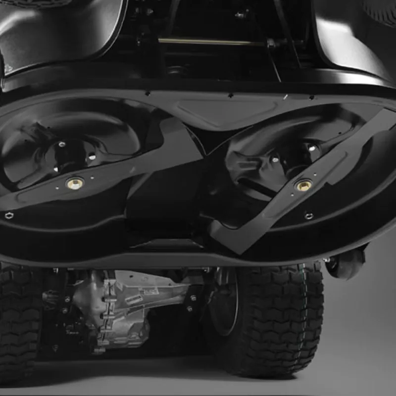 Высокое качество стрижки травы Вращаясь, S-образные ножи режущей деки создают мощный воздушный поток, который перед скашиванием приподнимает траву вверх. Это обеспечивает высокое качество стрижки и возможность работы в режиме мульчирования. Ножи деки вращаются под углом 90° по отношению друг к другу. Данная конструкция исключает образование участков нескошенной травы между ножами при маневрировании машины.