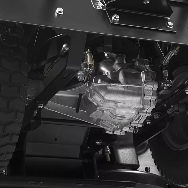 Широкие колеса с дерновыми покрышками Большая площадь касания снижает давление на грунт, а специальный мелкий рисунок протектора снижает риск повреждения деликатного газона.