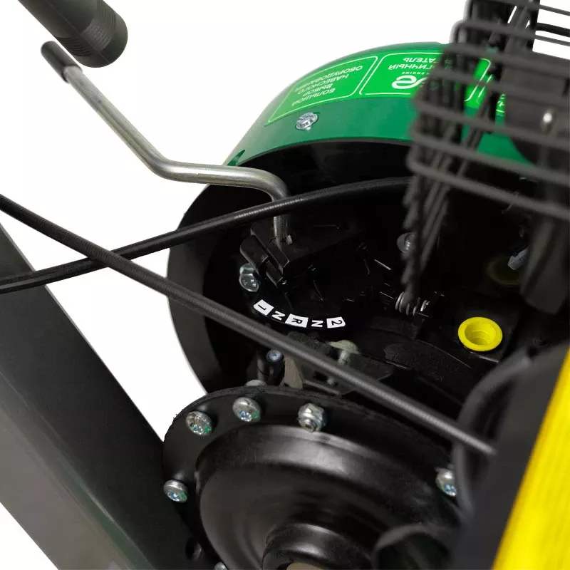 Передние передачи: пониженная 60-80 об/мин (для плуга, окучника и др.), повышенная 140-160 об/мин (для работы с фрезами), позволяют более эффективно обрабатывать участки со сложным рельефом и на влажной почве.