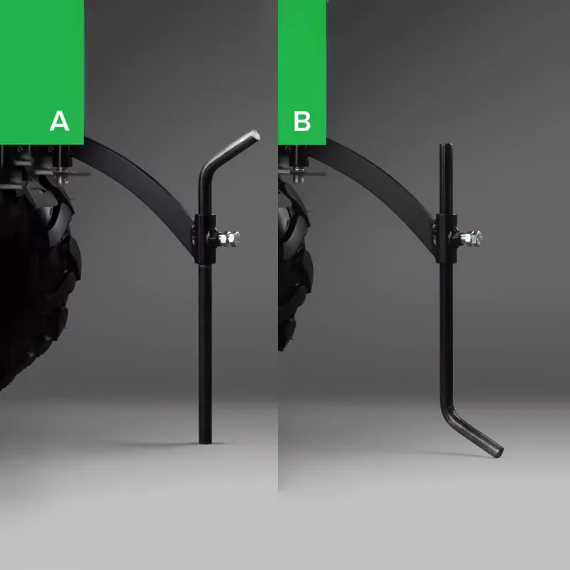 Двусторонний сошник Регулируется по высоте для изменения рабочей глубины. Прямой конец сошника позволяет усилить проникновение в твердую почву (А), а загнутый обеспечивает устойчивое продвижение по вязкой земле (В).