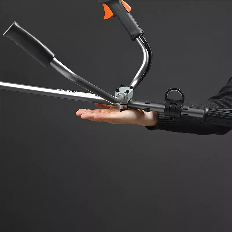 - Профессиональная ранцевая подвеска Ergomatic. Бензокоса удобна в эксплуатации, благодаря тому, что оператору не нужно удерживать весь ее вес в своих руках – инструмент подвешивается на удобный ремень, перемещающий основную тяжесть на плечи.