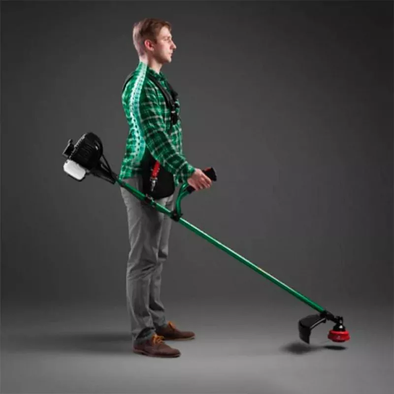 Трехточечная подвеска Ergomatic оптимально распределяет вес инструмента за счет ремней. Для большего комфорта предусмотрена мягкие накладки. Быстросъемное крепление позволяет одним движением руки отсоединить бензокосу в случае экстренной необходимости.